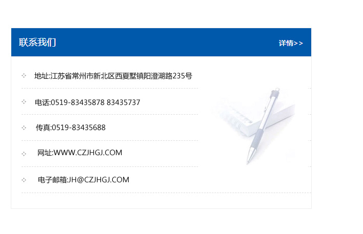 傳真:0519-83435688    郵編:213135    網址:WWW.czjhgj_com.longbang024.com    電子郵箱:JH@czjhgj_com.longbang024.com